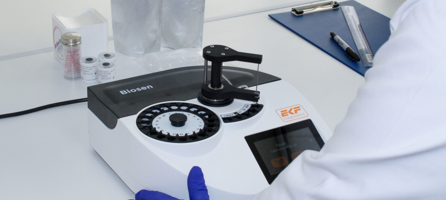 Das BIOSEN C-Line bietet laborgenaue Glukose- und Laktatmessungen in einem Test. MIt einer 20 µl Probe liefert es Ergebnisse in nur 20–45 Sekunden, mit bis zu 120 Tests pro Stunde.