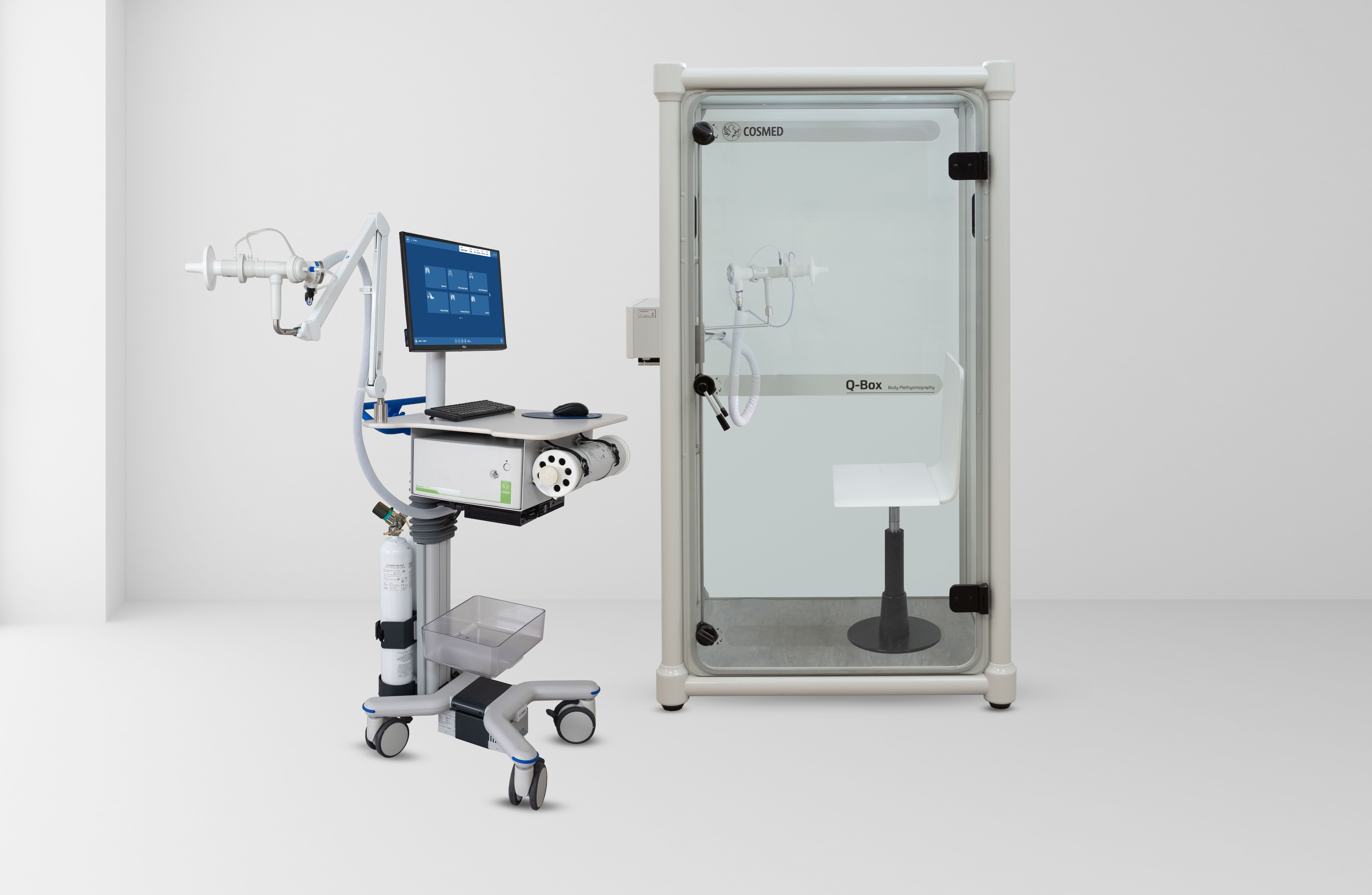 Die Q-Box ist die stand-alone Body-Box für die Goldstandardmessung von statischem Lungenvolumen und Atemwegswiderstand und -leitfähigkeit durch die Bodyplethysmographie-Technik.