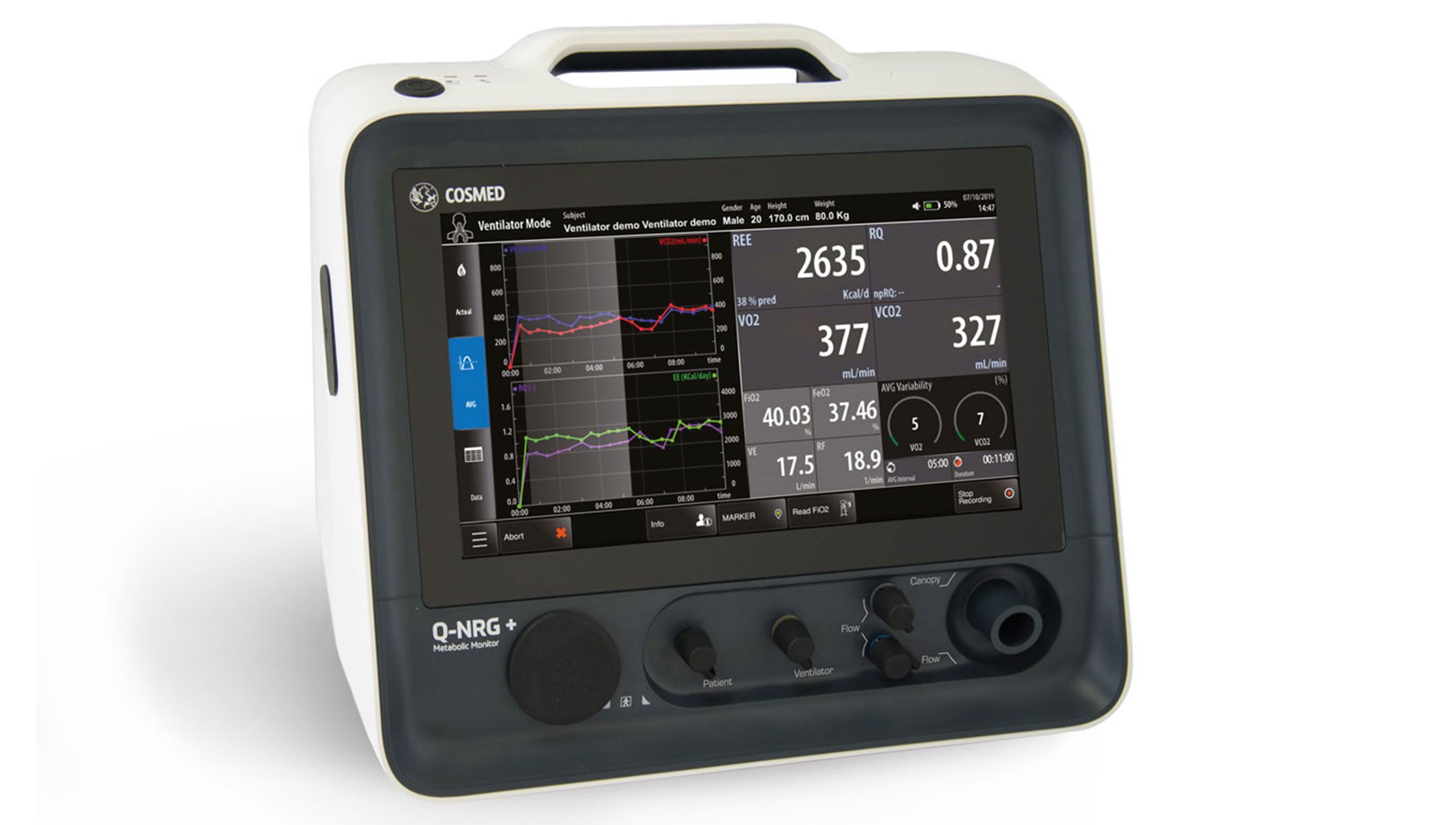 Le Q-NRG+ est le premier calorimètre indirect spécifiquement destiné à la mesure de la dépense énergétique au repos (DER) sur des sujets respirant spontanément ou sous respiration mécaniquement assistée.