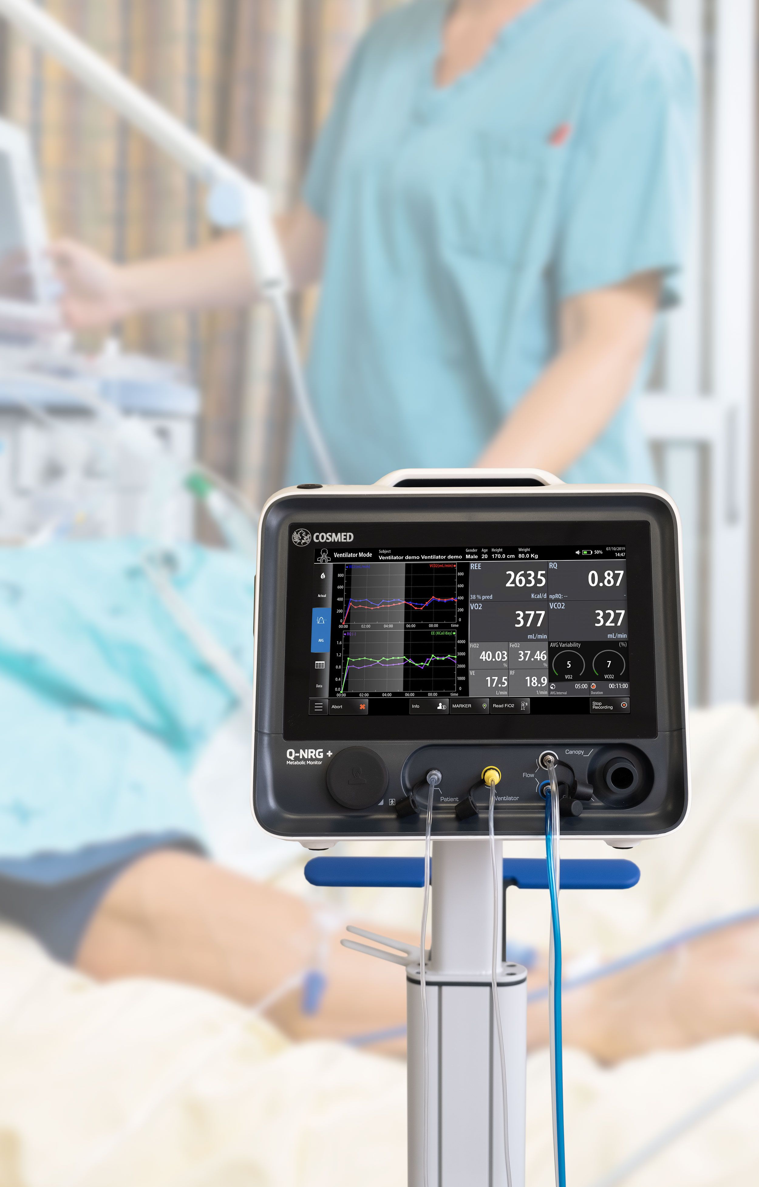 Q-NRG+ usa la calorimetria indiretta, rappresentando fedelmente lo stato metabolico dei pazienti e fornendo così preziose indicazioni sull'evoluzione della malattia o sulla risposta ai piani di supporto nutrizionale.
