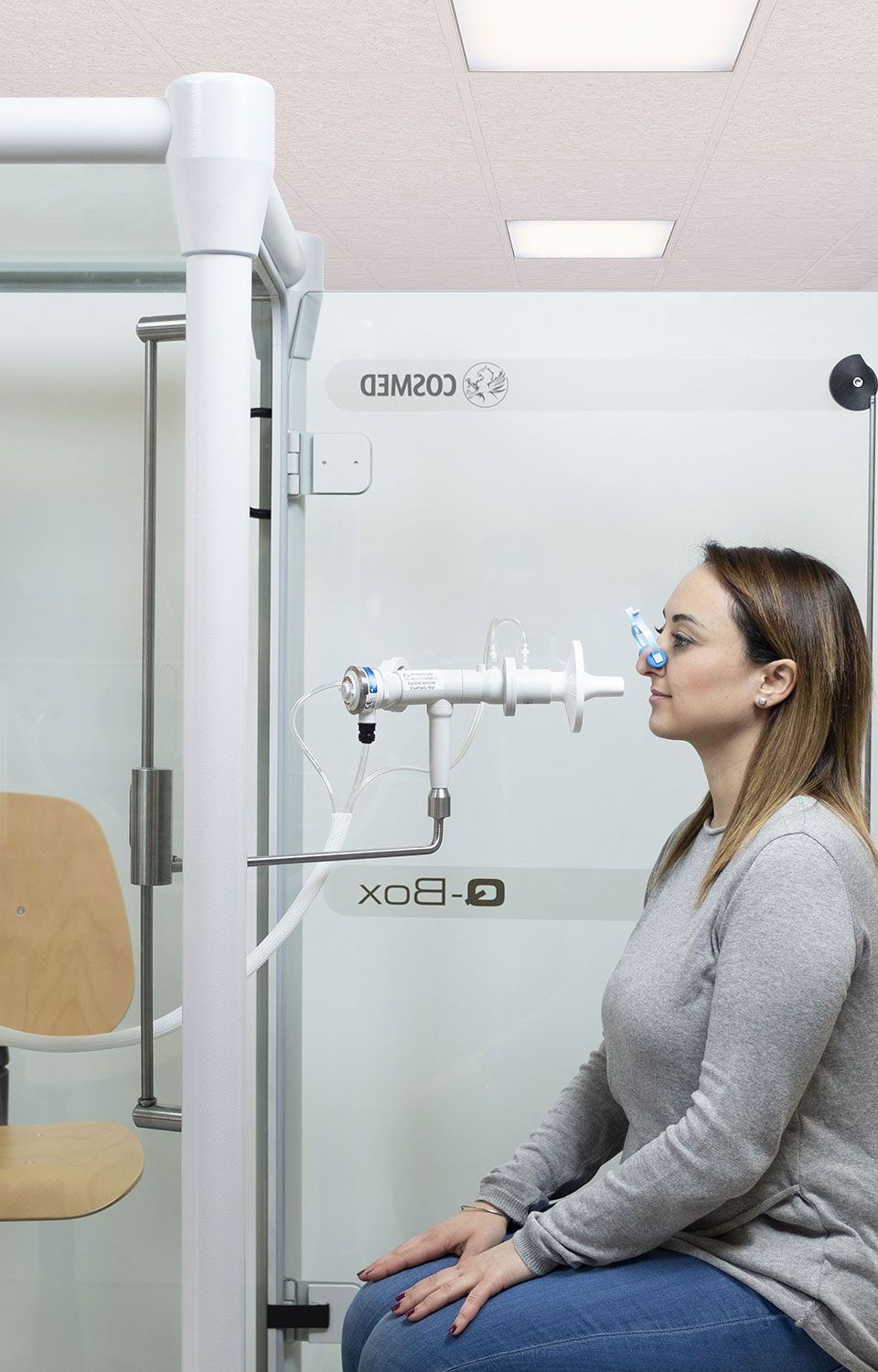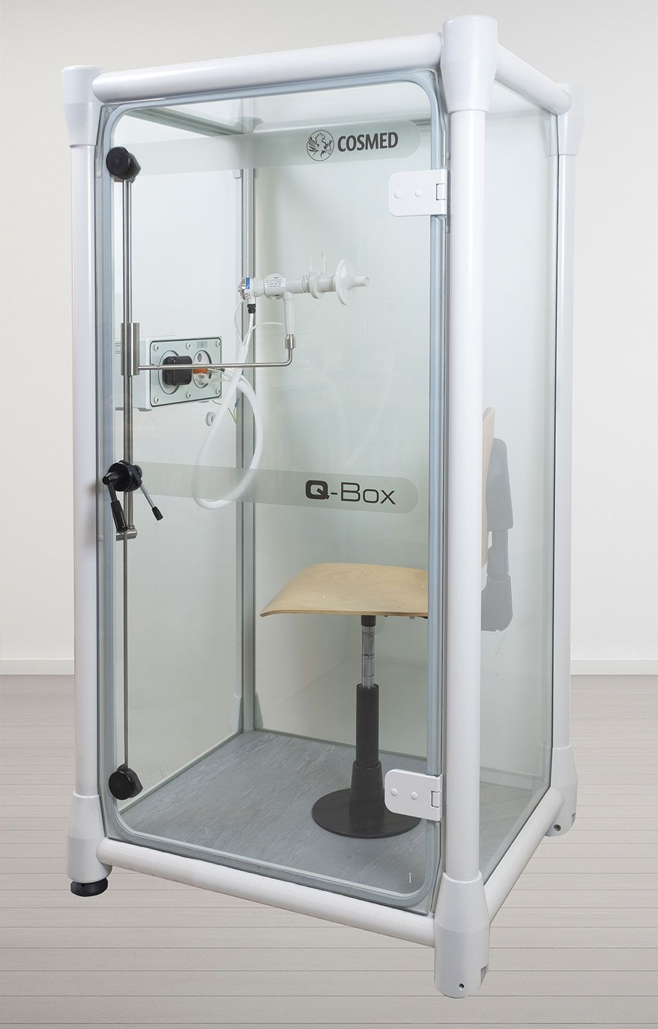 I componenti di qualità della cabina, il pneumotacografo altamente accurato e gli analizzatori veloci garantiscono risultati accurati e rendono la Q-Box una cabina pletismografica unica sul mercato.